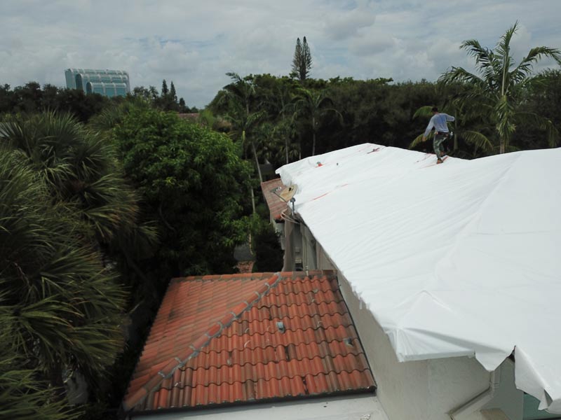 When you detect water damage one way to protect your house is to shrink wrap the roof immediately.